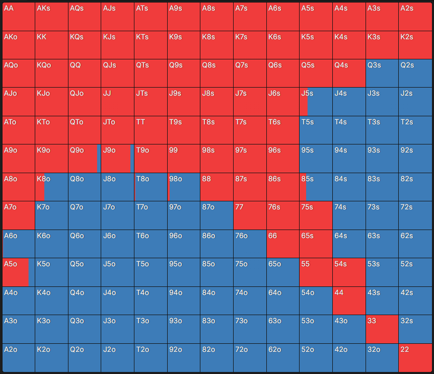 Усі чарти в цій статті побудовані на принципах GTO, які залишаються актуальними протягом тривалого часу. Вони формують надійну математичну основу й допомагають уникати грубих помилок. Згодом діапазони можна коригувати в бік експлуатаційної гри – залежно від спостережень за суперниками чи статистичних показників у базі даних гравця.